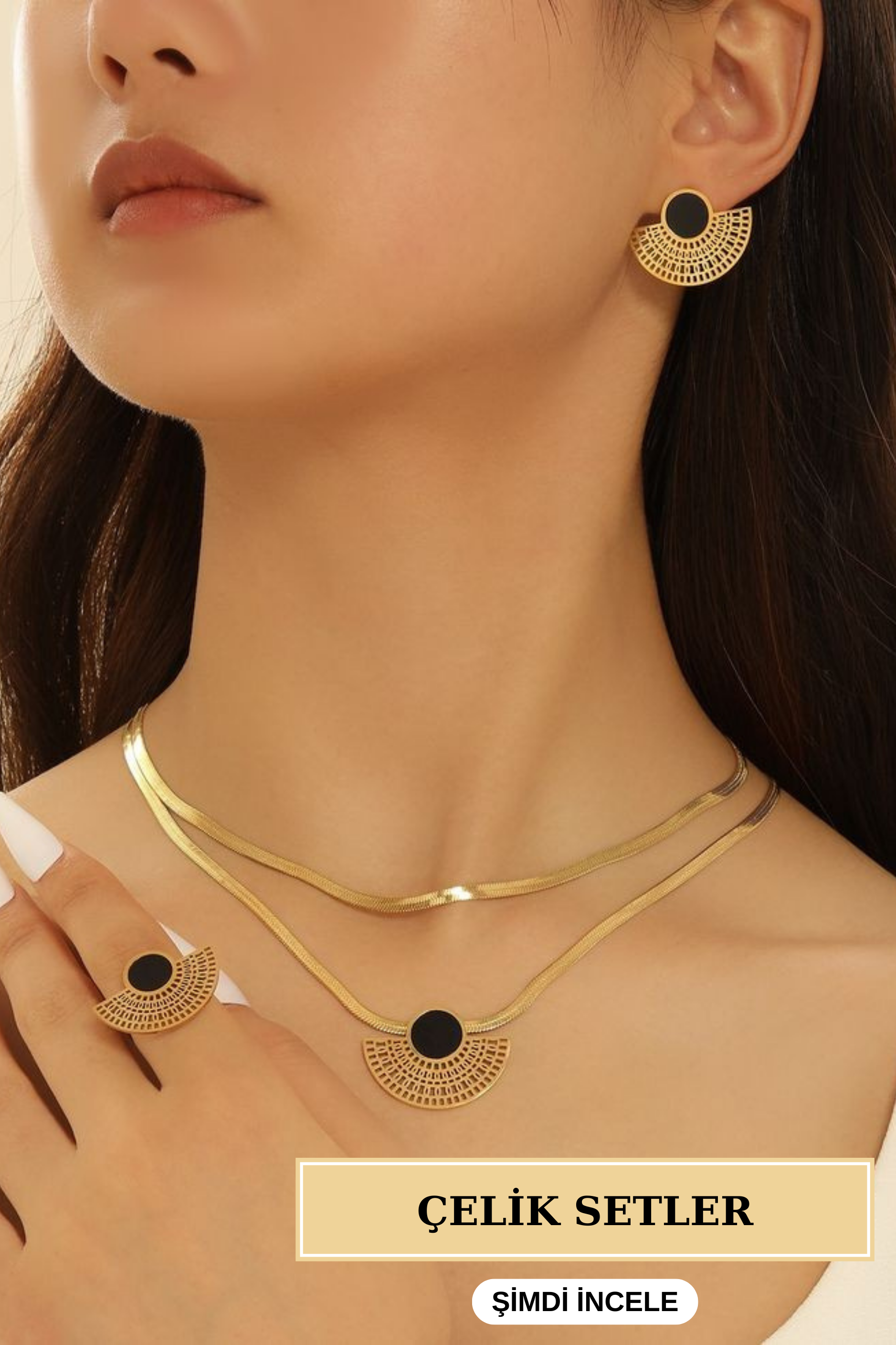 Estetik: Altın rengi kaplama ile takılara sıcak ve zarif bir dokunuş ekliyoruz. Her bir parça, özenle seçilmiş tasarımlarıyla göz alıcı bir şıklık sunar.